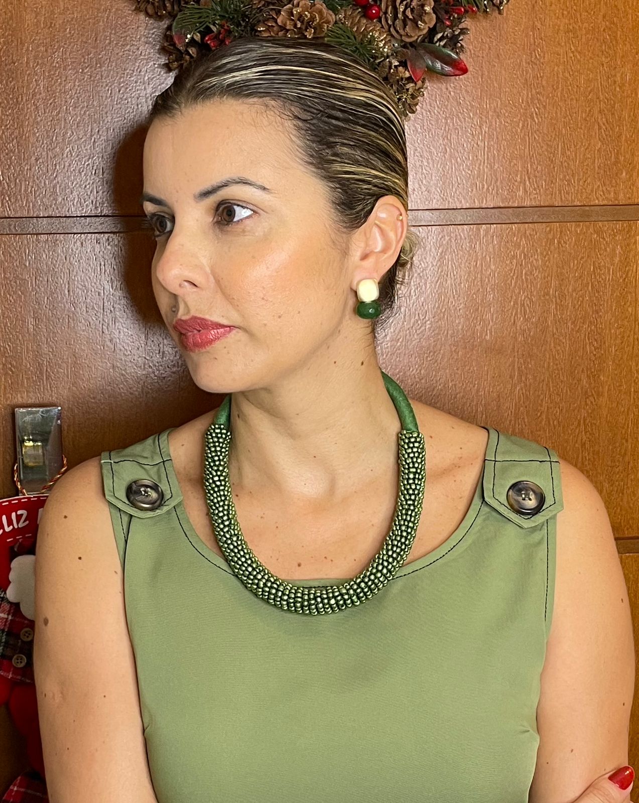Brinco com base quadrada fosca e com pedra redonda lapidada.
